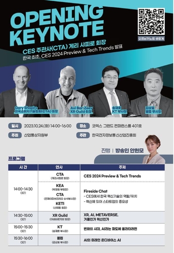 샤피로 회장은 기술 산업의 역동성과 글로벌 혁신의 원동력으로 한국의 역할에 대한 CTA의 관점을 공유하며 내년 초 열릴 'CES 2024'의 트렌드를 발표한다.