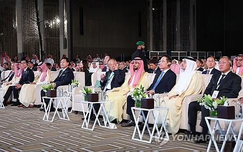 (서울=연합뉴스) 윤석열 대통령의 사우디아라비아 국빈 방문을 계기로 양국 간 156억달러(약 21조1천억원) 규모의 계약 및 양해각서(MOU) 51건이 체결됐다고 대통령실이 22일(현지시간) 밝혔다. 지난해 11월 무함마드 빈 살만 사우디 왕세자의 방한 때 두 나라 사이에 체결한 290억달러(약 39조2천억원) 규모의 계약 및 MOU를 합치면 총 446억달러(약 60조3천억원) 규모로 늘어난다. 아직 구체적인 협력사업으로 성사되기 전 단계이지만 양국 간 경제협력 규모가 상당하다 하겠다. 최상목 대통령실 경제수석은 현지 브리핑에서 "(지난해 11월 방한으로부터) 불과 1년도 안 되는 기간 290억달러 중 약 60% 이상이 구체적 사업으로 가시화하고 있다"고 밝혔다. MOU가 선언적 의미를 넘어서 실제 이행되고 있다는 점을 강조한 것이다. 이번 윤 대통령의 방문으로 양국 간 경협이 실질적으로 가속화될 것이라는 기대를 낳는다.