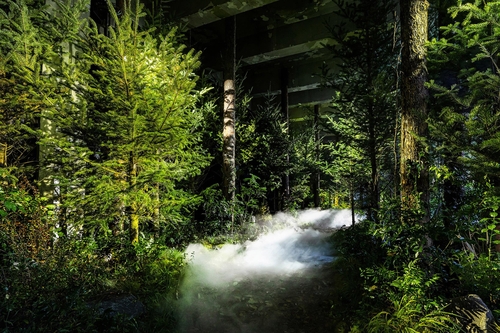 전시회는 2개 층으로 구성되는데 1층은 전나무 숲길과 키네틱 아트 설치 작품을 통해 상록수를 경험하게 하도록 꾸며졌고 2층에선 코오롱스포츠의 역사와 상품 실물을 전시한다.