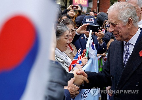 (런던=연합뉴스) 최윤정 특파원 = 영국 찰스 3세 국왕이 8일(현지시간) 유럽 최대 한인타운인 뉴몰든을 처음 방문해 한인들을 만났다.