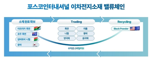 이를 위해 광산(흑연, 리튬, 니켈), 원료(동박), 소재(음극재, 양극재, 활물질), 배터리(Recycling)에 이르는 밸류체인을 구축해 그룹 사간 시너지를 키워 나갈 방침이다.