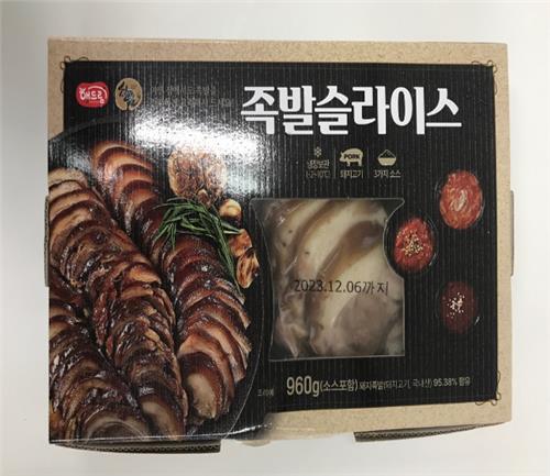 (서울=연합뉴스) 조현영 기자 = 식품의약품안전처는 보존료가 기준치를 넘은 것으로 확인된 축산물 가공 업체 해드림에프에스의 '족발슬라이스' 제품을 판매 중단 및 회수 조치했다고 21일 밝혔다.