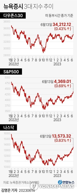 (뉴욕=연합뉴스) 윤영숙 연합인포맥스 특파원 = 뉴욕증시는 연방준비제도(연준·Fed)가 내년 3회의 금리 인하를 예상하면서 연준의 긴축이 종료되고 새로운 챕터가 시작된다는 점에 환호했다.
