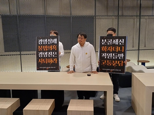 서 지회장은 이에 대해 "카카오엔터테인먼트의 경영·투자 실패와 불법 의혹으로 위기가 촉발된 것인데 황당하다"며 "직원들의 분골쇄신으로 해결할 수 없는 문제"라고 비판했다.