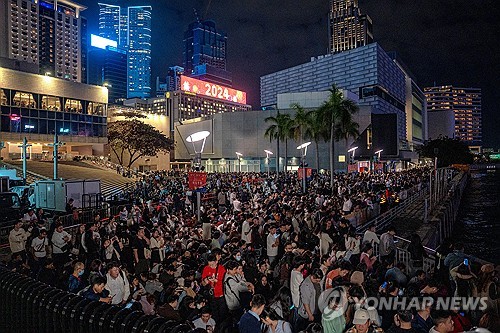 전날 홍콩의 낮 기온이 25.7도를 기록하며 139년 만에 가장 더운 12월 31일을 맞은 가운데 많은 인파가 불꽃놀이 관람 명당을 차지하기 위해 정오께부터 빅토리아 하버로 몰려나왔다.