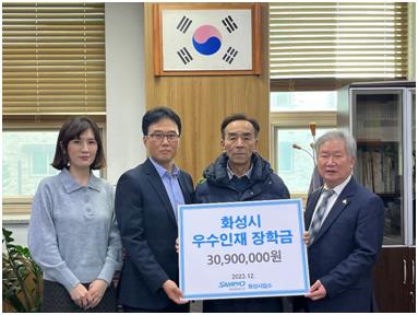 ▲ 삼표그룹 계열사인 삼표산업 화성사업소는 지난달 28일 경기도 화성시 비봉면 행정복지센터에 지역의 우수한 인재 양성을 위해 써달라며 장학금 3천90만원을 기탁했다고 3일 밝혔다. 장학금은 화성시 비봉면과 남양읍 내 중·고·대학생 45명에게 전달될 예정이다. 삼표산업 화성사업소는 1997년부터 지금까지 약 26년간 780여명의 장학생에게 총 5억6천만원의 장학금을 전달했다. (서울=연합뉴스)