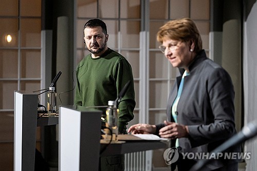 젤렌스키 대통령은 15일(현지시간) 스위스 수도 베른에서 비올라 암헤르트 대통령과 정상회담을 가졌다. 이날 스위스 휴양도시 다보스에서 개막한 세계경제포럼(WEF·다보스포럼) 연차총회에 참석하기에 앞서 개최국 정상을 만난 자리다.