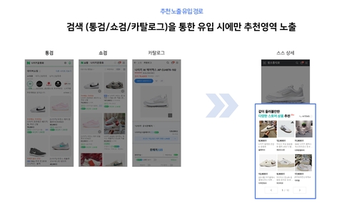 이번 추천영역 노출 테스트는 잠재적 고객 접점 확대를 위해 에이아이템즈를 네이버쇼핑 상품 상세 페이지에 접목한 것으로, 이용자가 탐색한 상품 상품 상세에 이용자 취향과 쇼핑 이력 등을 분석하는 '같이 둘러볼 만한 다양한 스토어 상품 추천' 블록을 추가했다.
