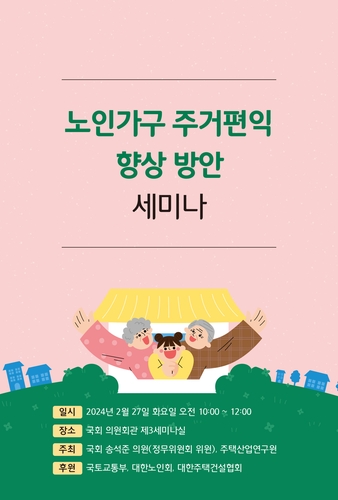 주택산업연구원(주산연)은 27일 서울 여의도 국회 의원회관에서 '노인가구 주거편익 향상방안'을 주제로 세미나를 열고 이같이 주장하면서 노인가구 특별공급제도 도입 등을 제안했다.