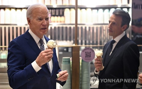 (서울=연합뉴스) 박진형 기자 = '고령 리스크'로 고전하는 조 바이든(81) 미국 대통령이 토크쇼에 출연, 경쟁자인 도널드 트럼프(77) 전 대통령의 나이와 정신 건강 상태를 공격했다.