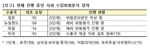 1993년 검역을 신청한 미국은 2단계이고 뉴질랜드(2008년 신청)와 독일(2016년 신청)은 각각 3단계다.