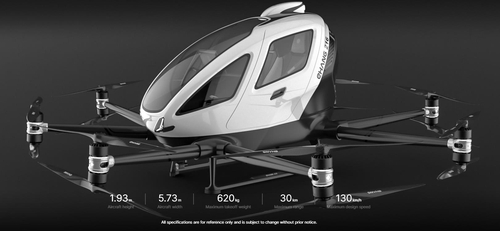 EH216-S는 조종사 없이 승객을 태운 채 수직으로 뜨고 내릴 수 있는 전기 수직이착륙기(eVTOL)다.