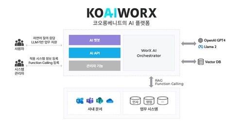 (서울=연합뉴스) 최현석 기자 = 코오롱그룹 IT서비스 전문기업 코오롱베니트는 엔터프라이즈용 AI 플랫폼 '코아이웍스(KOAIWORX)'를 개발했다고 8일 밝혔다.