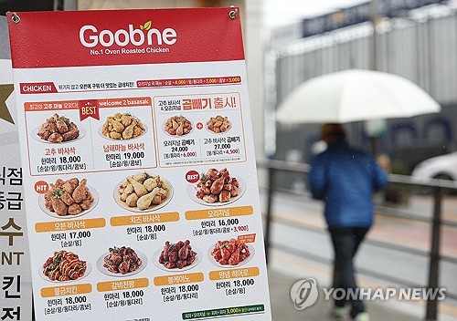 15일 프랜차이즈 업계에 따르면 치킨 프랜차이즈 굽네는 이날 배달 수수료와 인건비, 임대료 상승을 이유로 치킨 9개 제품 가격을 일제히 1천900원씩 인상했다.