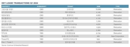 글로벌 상업용 부동산 컨설팅 기업인 쿠시먼앤드웨이크필드 코리아가 22일 발간한 '2024년 1분기 오피스·투자 시장 보고서'에 따르면 지난 1분기 A급 오피스빌딩의 평균 공실률은 전 분기 대비 0.2%포인트 하락한 2.4%로 나타났다.
