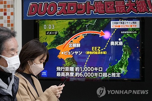 [속보] 日 "北 탄도미사일 가능성 물체, 이미 日EEZ 밖 낙하"