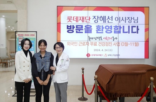 ▲ 롯데복지재단은 롯데의료재단이 운영하는 경기도 성남의 보바스기념병원에서 올해 외국인 근로자 300명에게 무료 건강검진을 제공한다고 25일 밝혔다. 현재까지 외국인 근로자 100명이 건강검진을 받았다. 이중 10명은 2010년 결혼이민을 통해 한국으로 이주한 캄보디아 출신 '당구 스타' 스롱 피아비를 통해 모집됐다. 1994년 외국인 근로자를 돕기 위해 설립된 롯데복지재단은 지금까지 산재 외국인 근로자 지원 등에 누적 279억원을 투입했다. (서울=연합뉴스)