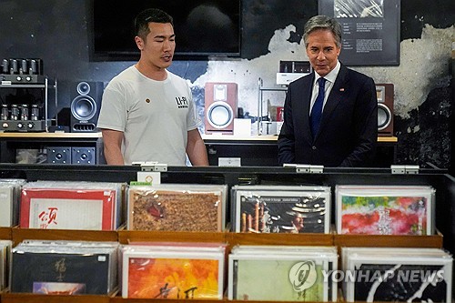 27일(이하 현지시간) 로이터통신에 따르면 블링컨 장관은 전날 시진핑 중국 국가주석과 회동을 끝내고 공항으로 이동하다가 갑자기 베이징의 예술 거리 798예술구에 있는 한 음반 판매점으로 방향을 틀었다.