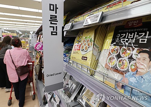 (서울=연합뉴스) 김윤구 기자 = 밥반찬으로 사랑받는 김 가격 상승세가 꺾이지 않고 있다.