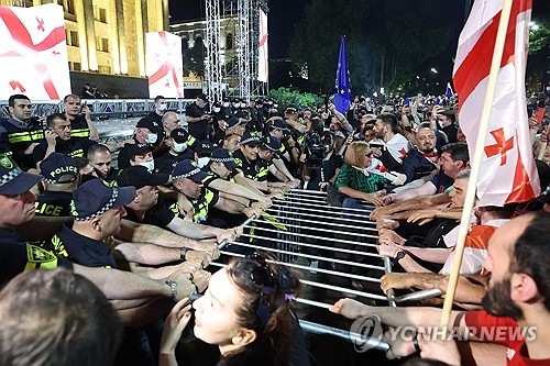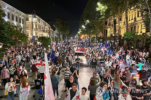 (서울=연합뉴스) 권수현 기자 = 흑해 연안국 조지아에서 여당이 러시아와 유사한 언론·비정부기구(NGO) 통제법안 처리를 강행하자 야권과 시민단체 등은 이에 반대하며 대규모 '친유럽·반러시아' 시위를 벌였다.