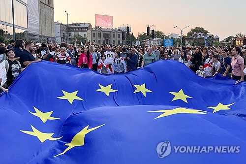 28일(현지시간) 로이터와 AFP통신 등에 따르면 이날 저녁 조지아 수도 트빌리시 중심부의 공화국광장에 약 2만명이 모여 '유럽을 위한 행진' 시위를 진행했다.