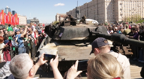 러시아 모스크바 광장에 등장한 미국 에이브럼스 전차를 바로 눈앞에서 본 모스크바 시민들의 반응은 뜨거웠다.
