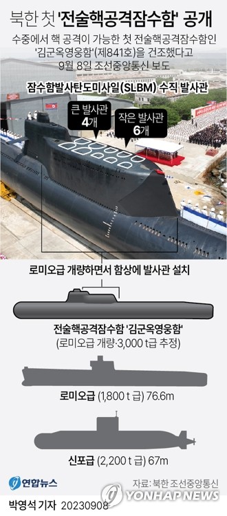 (서울=연합뉴스) 권수현 기자 = 북한이 지난해 9월 첫 전술핵공격잠수함이라고 주장하며 공개한 '김군옥영웅함'과 동급으로 추정되는 잠수함을 추가로 건조 중인 징후가 있다는 관측이 나왔다.