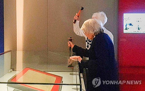 (런던=연합뉴스) 김지연 특파원 = 영국에서 80대 환경운동가 2명이 13세기 기록유산인 '마그나 카르타(Magna Carta·대헌장)'를 보호하는 유리 덮개에 망치질을 하다가 경찰에 체포됐다.