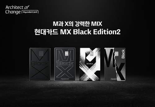 ▲ 현대카드는 '현대카드 MX 블랙 에디션2'를 22일 출시했다. 이 카드는 국내외 모든 가맹점에서 적립 한도 없이 결제한 금액의 1%를 M포인트로 적립할 수 있다. 온라인쇼핑, 백화점, 커피·베이커리, 편의점, 주유·대중교통 등 5개 업종에서 10% 청구 할인을 받을 수 있다. 전월 100만원 이상 이용 시 영역별 각 1만원씩 최대 5만원, 200만원 이상 이용 시 각 2만원씩 최대 10만원이다. '비자 시그니처' 등급에 제공되는 프리미엄 혜택과 전 세계 1천여개 공항 라운지(연 5회) 등 혜택도 있다. 연회비는 20만원이다. (서울=연합뉴스)
