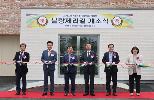▲ LIG넥스원[079550]은 경북 구미시 임은동에 장애인들이 근무하는 카페와 베이커리인 '블랑제리길'을 열었다고 28일 밝혔다. 블랑제리길은 구미시 임은동에 본점을 두고 LIG넥스원 구미하우스에서 카페와 베이커리를 운영한다. 현재 구미 본점에는 바리스타와 제과·제빵 분야 장애인 23명과 비장애인 7명이 근무 중이다. 향후 LIG넥스원의 주요 사업장인 대전과 용인에 영업점을 확대하고 장애인 채용을 늘릴 계획이다. (서울=연합뉴스)