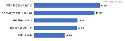 정주여건 우선순위는 교통, 주거환경, 의료, 문화·쇼핑, 교육 순
