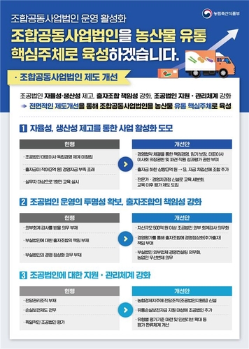 농림축산식품부는 조합공동사업법인 도입 20주년을 맞아 '조합공동사업법인 운영 활성화 대책'을 마련했다고 30일 밝혔다.