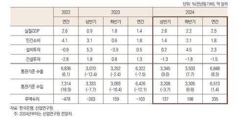 산업연구원은 작년 11월 '2024년 경제·산업 전망'에서는 올해 경제 성장률을 2.0%로 전망했다가, 예상보다 강한 최근의 수출 회복 흐름을 반영해 이번에 0.5%포인트 상향 조정했다.
