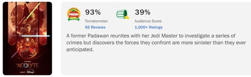 미국의 영화·TV시리즈 비평 전문매체 로튼로마토는 5일 애콜라이트에 대한 초기 여러 리뷰를 모아 전하는 기사를 게재하며 "친숙하지만, 새로운 스타워즈의 비전에 놀라운 액션으로 가득하다"는 제목을 달았다.