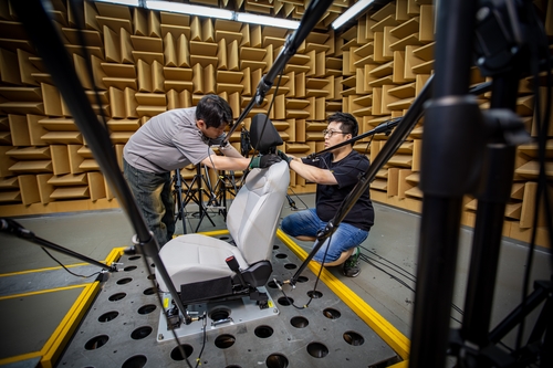 이어 방문한 '복합 환경진동 시험실'에서는 영하 20도의 살을 에는 추위가 느껴졌다. 방음 공간으로 꾸민 이곳에서는 혹한·혹서 환경에서 시트의 어느 부위에서 소음이 발생하는지 확인한다.