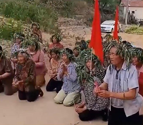 산둥성 이멍(沂蒙)산 지역에서는 지난 11일 마을 주민들이 '풀모자'를 머리에 쓴 채 단체로 기우제를 지냈다고 신경보는 전했다.