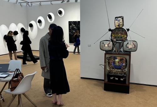 (런던=연합뉴스) 김지연 특파원 = 세계적 아트페어(미술장터)인 영국 '프리즈 런던'에서 한국 작가 작품들이 손님맞이에 한창이다.