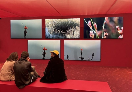 LG전자는 프리즈 런던에 별도 공간을 마련해 가나 출신 영국 미술가 겸 영화감독 존 아캄프라가 기후 위기를 주제로 다룬 30분 길이의 영상 작품 '바람이 되어'를 97인치 올레드(OLED) TV 5대로 선보이고 있다.