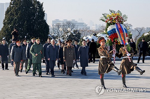 (모스크바=연합뉴스) 최인영 특파원 = 북한을 공식 방문 중인 안드레이 벨로우소프 러시아 국방장관이 평양에서 해방탑과 만경대를 방문했다고 러시아 국방부가 30일(현지시간) 밝혔다.