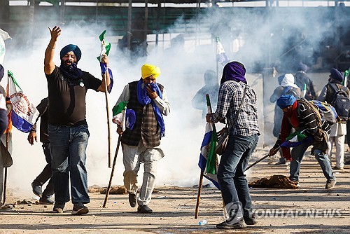 (뉴델리=연합뉴스) 유창엽 특파원 = 인도 농민 수백명이 농산물 최저가 수매 보장 등 정부의 약속 이행을 요구하며 수도 뉴델리를 향해 행진하다가 경찰과 충돌, 최소한 17명이 부상했다.