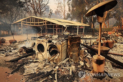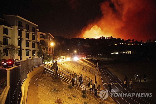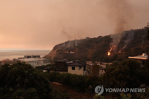 (로스앤젤레스=연합뉴스) 임미나 특파원 = 미국 로스앤젤레스(LA) 카운티의 서부 관광명소인 말리부 해변에 대형 산불이 발생해 주민들의 안전을 위협하고 있다.