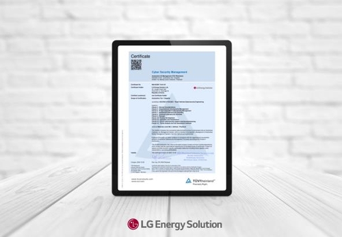 LG에너지솔루션은 국제 시험 인증 기관 TUV라인란드로부터 국제표준 ISO/SAE 21434 기반의 CSMS 레벨3 인증을 획득했다고 20일 밝혔다.