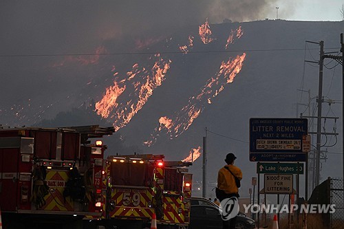 캘리포니아 산림·소방국에 따르면 이날 오전 10시 53분께 LA 카운티 북부 캐스테이크호 인근에서 산불이 발생해 오후 3시 56분까지 8천96에이커(32.8㎢)를 태웠다.