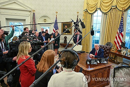 30일(현지시간) AP통신에 따르면 트럼프 대통령은 취임 후 첫 주에 카메라 앞에서 7시간44분 동안 단어 8만1천235개를 쏟아냈다.