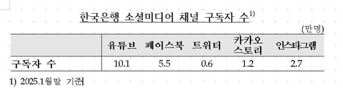 한은은 '시끄러운 한은을 만들자'는 이 총재 대국민 소통 강화 기조에 따라 유튜브 외 다른 소셜 미디어도 활성화 중이다.