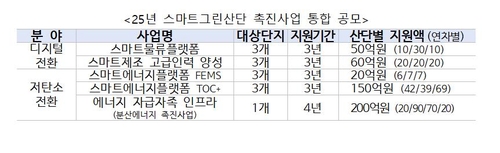 (서울=연합뉴스) 김동규 기자 = 산업통상자원부는 올해 산업단지의 디지털 전환(DX)과 저탄소 전환(GX)을 위한 '스마트 그린산단 촉진 사업' 통합 공모를 다음 달 17일까지 진행하고 총 710억원의 예산을 지원한다고 4일 밝혔다.