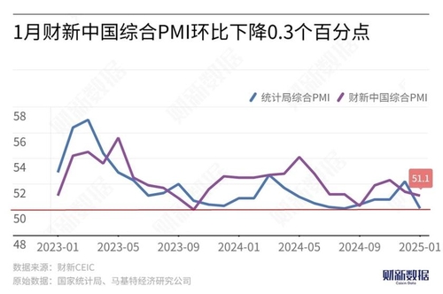 차이신 서비스업 PMI는 중국 국가통계국이 발표한 1월 서비스업 업황지수가 50.3으로 전월보다 1.7 떨어진 것과 궤를 같이했다.