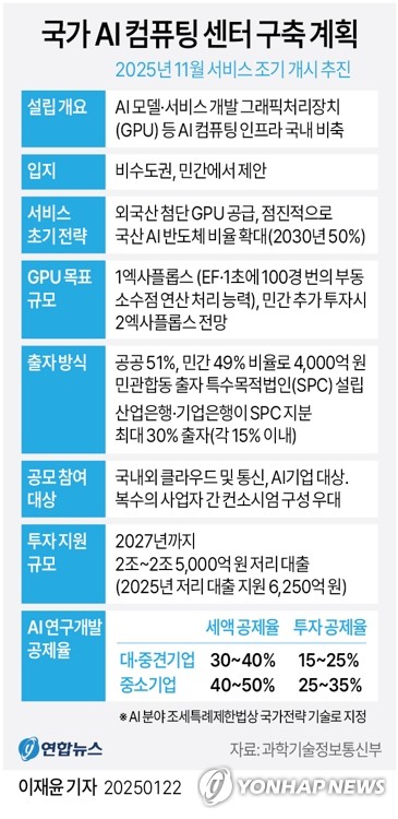 비수도권 입지에 들어설 국가 AI 컴퓨팅 센터는 공공과 민간이 각각 51%, 49% 비율로 총 4천억원을 출자한 민관합동 특수목적법인(SPC)이 구축을 맡는다.