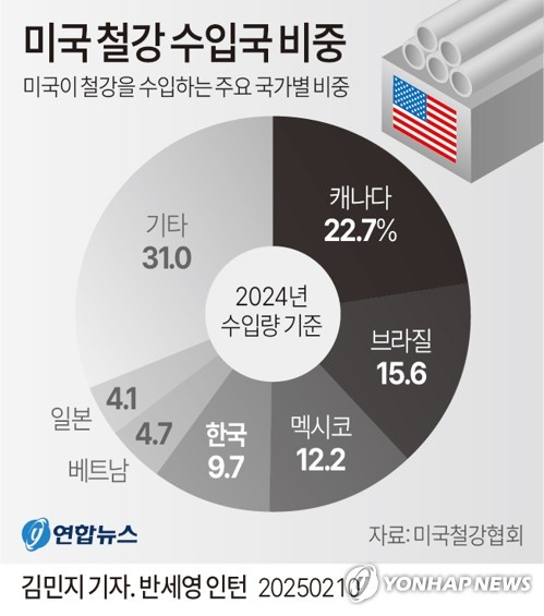 한국무역협회에 따르면 작년 한국의 전체 철강 수출액에서 미국 비중은 약 13% 수준이다.