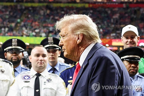 (워싱턴=연합뉴스) 김동현 특파원 = 도널드 트럼프 미국 대통령이 9일(현지시간) 현직 미국 대통령으로서는 처음으로 미국프로풋볼(NFL) 결승전인 슈퍼볼을 관람했다.